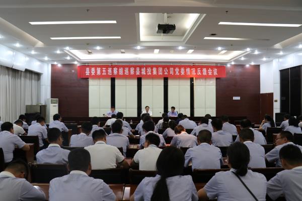 9月26日,城投集團(tuán)黨委召開縣委第五巡察組巡察縣城投集團(tuán)公司黨委情況反饋會議??h政府副縣長孔繁清,縣委第五巡察組組長袁清華、副組長陳宗乾、李務(wù)剛,縣財政局副局長彭云龍,縣紀(jì)委第四監(jiān)察室李新義同志出席會議。會議由集團(tuán)黨委書記邱強(qiáng)主持,集團(tuán)公司領(lǐng)導(dǎo)班子成員,各部門、下屬子公司負(fù)責(zé)人及全體員工參加。